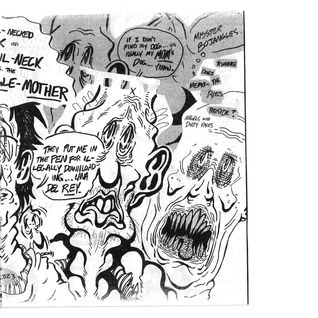 Let’s get down to business. Dypso consists of dozens and dozens of bald men with droopy-dog faces, all drawn by Dan Welch at a bar after he gets out of work every day. More pertinently, it also consists of a series of introspective beer-soaked squabbles for the artist.