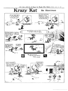 Hailed as the most creative comic strip of all time, Krazy Kat offers a witty, raucous, and poetic portrayal of a love triangle between a mouse, a cat, and a dog. Krazy, a free-spirited, gender-fluid feline (sometimes referred to as he, sometimes she, sometimes both in the same strip), pines for Ignatz Mouse. Ignatz scorns Krazy's affection, frequently lobbing bricks at the hapless cat — much to the indignation of Officer Pupp, a nightstick-wielding canine. The outlandish dramas play out in devilishly witty dialogue, delivered against a surrealistic desert backdrop. The antics of this extraordinary threesome entertained readers for decades, and The New York Times recently deemed the ahead-of-their-time comic strips "as entrancing today as when George Herriman wrote and drew them."