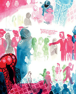 A new edition of the debut classic by a visionary stylist offered in a deluxe format. Rendered in vivid watercolor where parquet floors and patterned dresses morph together, The Wrong Place revolves around oft-absent Robbie, a charismatic lothario of mysterious celebrity who has the run of a city as chaotic as it is resplendent. Robbie’s sexual energy captivates the attention of men and women alike; his literal and figurative brightness is a startling foil to the dreariness of his childhood friend, Francis.