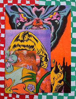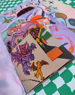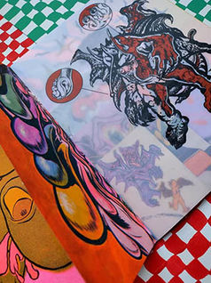 An experimental, multi-layered colourful zine with various types of papers and illustrations. Every time you turn a page the size of the next one differs and creates multiple visual layers.