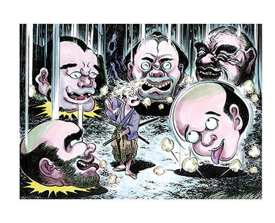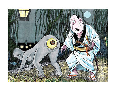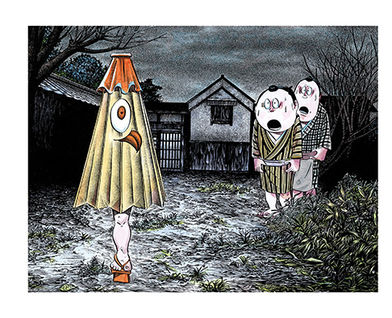 Manga titan Shigeru Mizuki brings Japan’s most entertaining myths to the modern age. As travelers approach a lush, cedar forest—the soft floor and woodland scent palpable from Shigeru Mizuki’s fecund drawing—something falls from the trees with a thud: a human head, twelve times average size. A dozen more heads follow, peering at the travelers with maniacal laughter, before retreating back into the woods. A hallucination? No, this is Tohoku No Tsurubeotoshi.