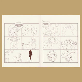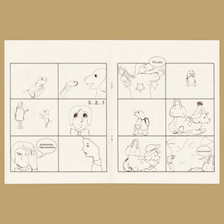 In this treasure trove of a story, we follow two heroes - a girl and her loyal pet dog - as they journey through a landscape shaped by classic folk stories and fairy tales. But don’t let these long-established motifs fool you into thinking you know what is waiting around the corner! For each familiar encounter - like a tempting trail of treats or an unsettling, sickly-sweet villain - there is plenty of oddity and excitement to be found. 198x264, 28 pages, risoprinted in brown on 150g and 250 (cover), staple-bound with a fold-put glossy poster, edition of 750.
