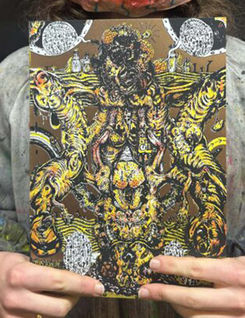 Libro serigrafiado Leporello, 20 páginas / 21 x 30 cm / 9 colores / 150 ejemplares / Papel Fedrigonni de 260 g + Cubierta en papel dorado de 320 g